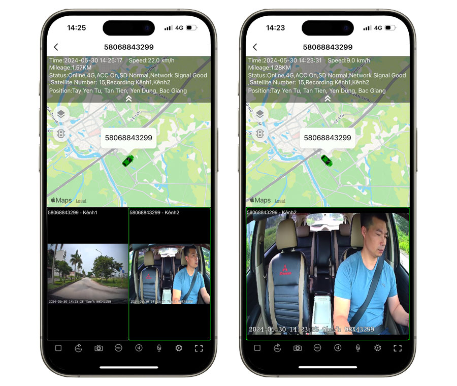 Bạn có thể xem video trực tuyến đồng thời cả hai kênh (camera trước và camera trong cabin) trên một màn hình smartphone hay trên máy tính- Với các loại camera giám sát hành trình khác, bạn chỉ có thể xem từng camera trên 1 màn hình.