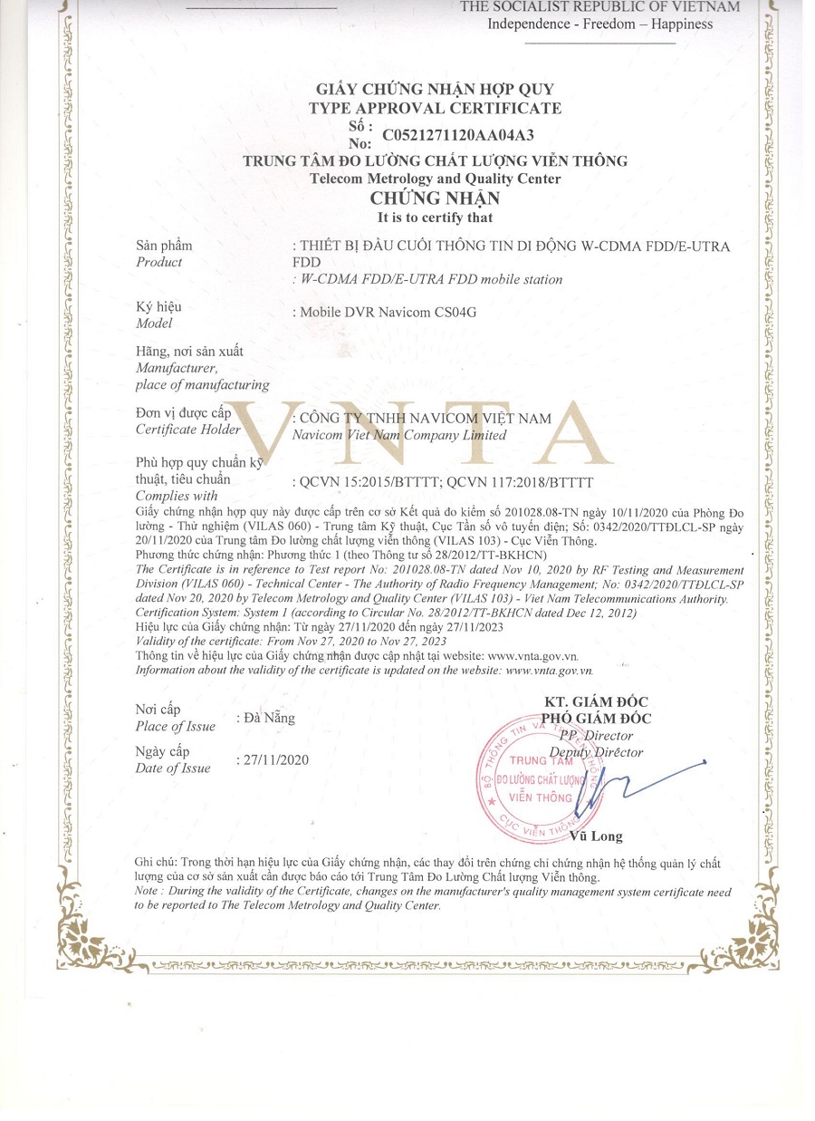 Navicom Việt Nam tự hào là đơn vị đầu tiên cung cấp được hệ thống camera giám sát ô tô đáp ứng nghị định 10/2020, thông tư 12/2020 và đã được cấp chứng nhận hợp quy của Bộ Truyền thông Thông tin.