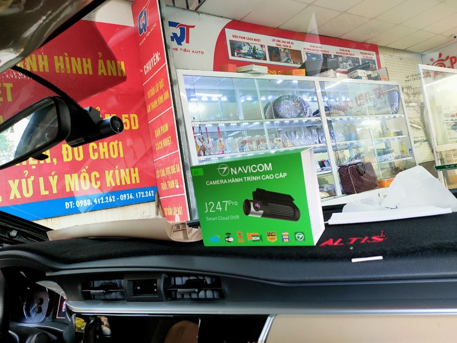 Camera hành trình siêu nhỏ Navicom J247Pro lắp gọn gàng sau kính chiếu hậu không gây vướng tầm nhìn, mất an toàn khi lái xe