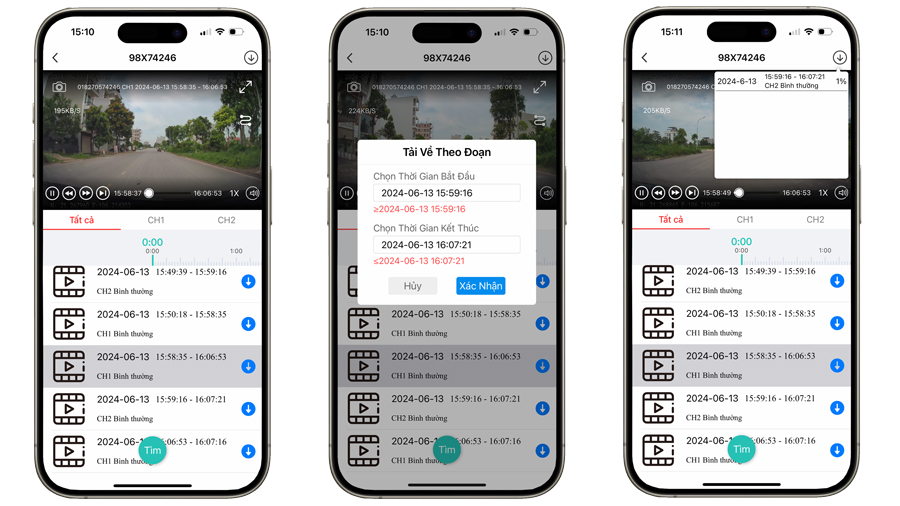 Camera phía trước và camera trong cabin xe ghi hình độ phân giải Full HD 1080P, camera phụ phía sau ghi hình độ phân giải HD 720P.