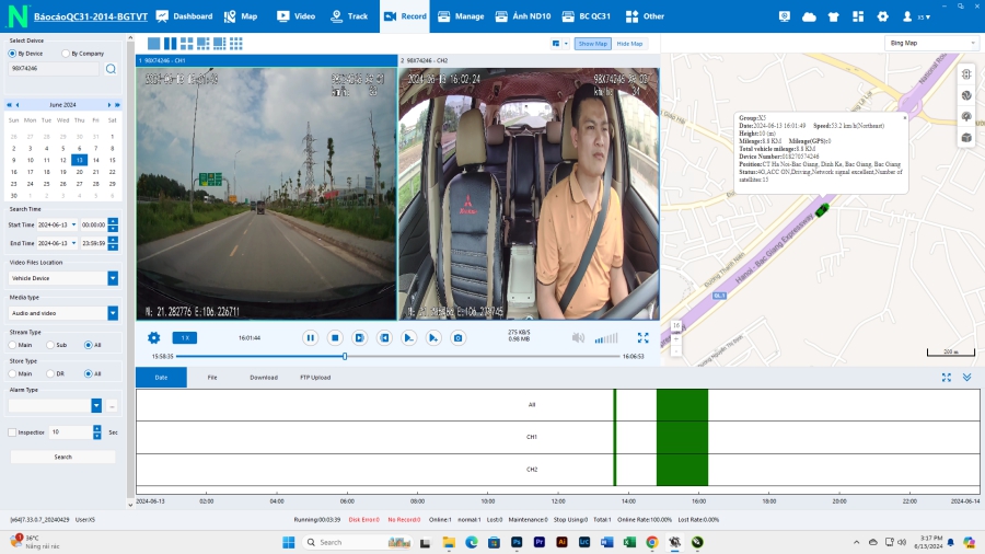 Video ghi hình hiển thị thông tin: thời gian, tọa độ, tốc độ, biển số xe...