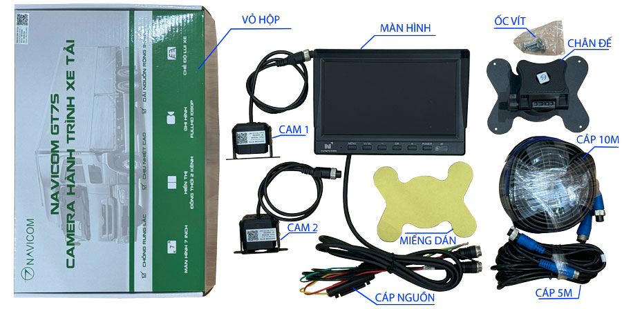 Camera hành trình xe tải Navicom GT7S với 2 camera tách rời màn hình rộng với nhiều tính năng hỗ trợ lái xe an toàn.