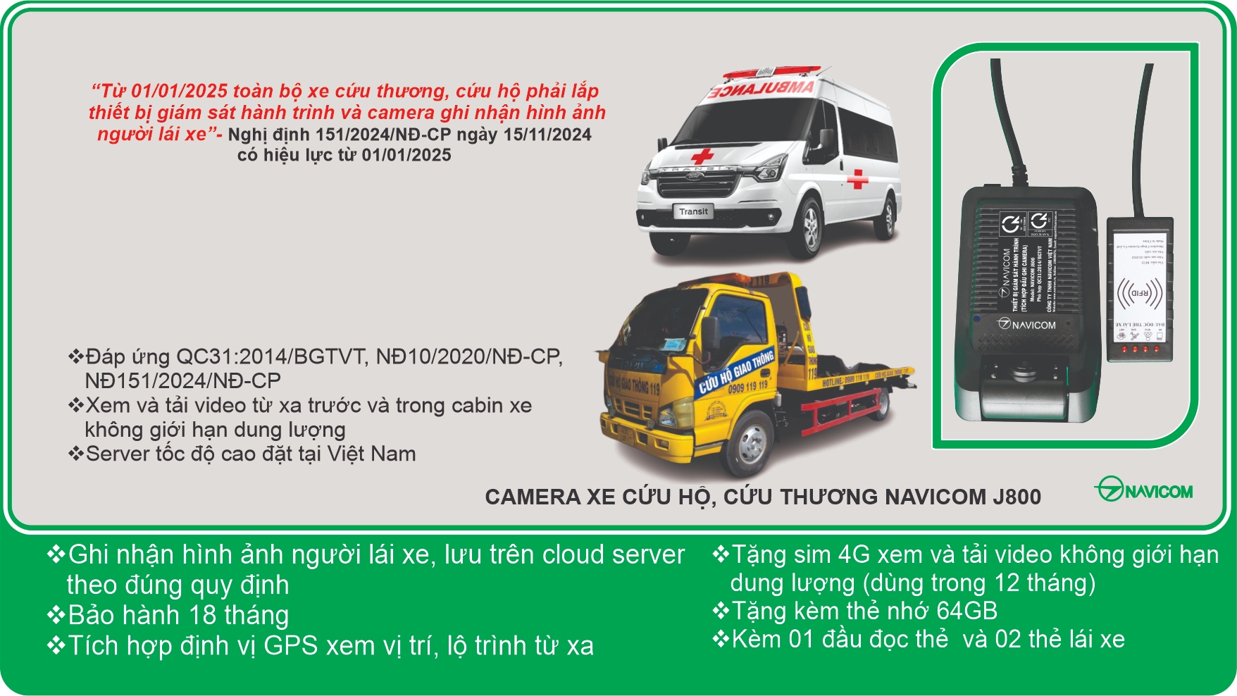 Camera xe cứu thương Navicom J800 đáp ứng quy định của Luật an toàn giao thông đường bộ 2024