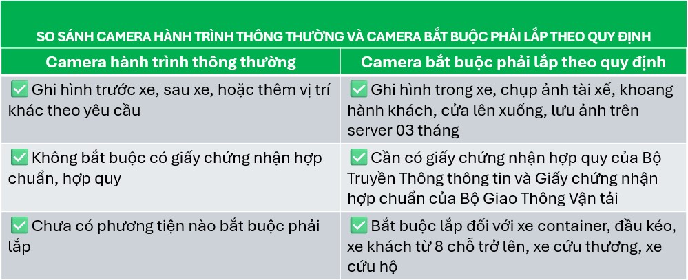 "Xe ô tô kinh doanh vận tải phải lắp thiết bị giám sát hành trình. Xe ô tô chở người từ 08 chỗ trở lên (không kể chỗ của người lái xe) kinh doanh vận tải, xe ô tô đầu kéo, xe cứu thương phải lắp thiết bị giám sát hành trình và thiết bị ghi nhận hình ảnh người lái xe"