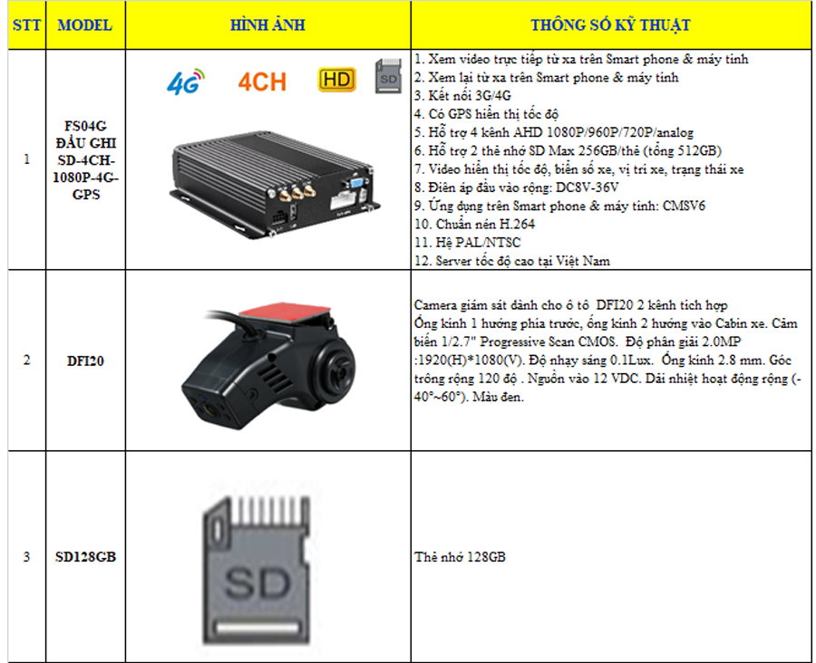 Hệ thống camera giám sát xe khách, xe bus, xe taxi Navicom HTCT02 gồm: